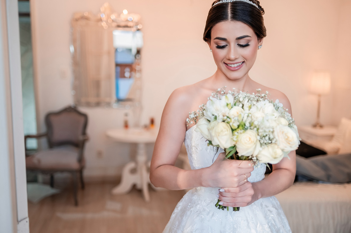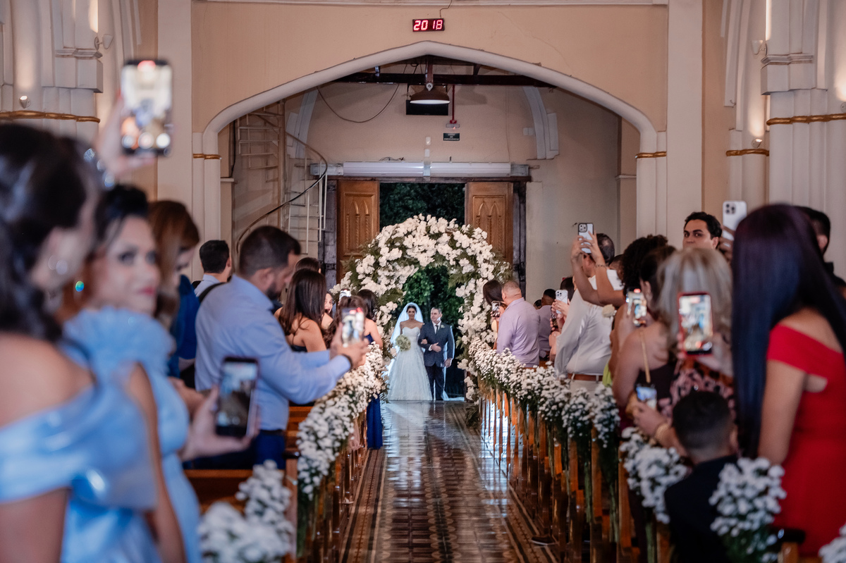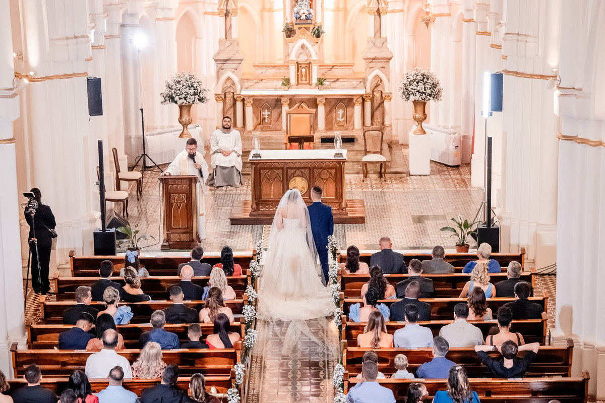 Esse dia tivemos uma celebração de um encontro de almas. Gabrielle, em sua luz radiante, caminhou ao encontro de Cristhian, que a esperava com aquele olhar de quem finalmente encontra o seu porto seguro. Entre os sorrisos cúmplices e a emoção que embargava a voz em cada promessa, era impossível não sentir que o amor, em sua forma mais pura, transbordava por ali.